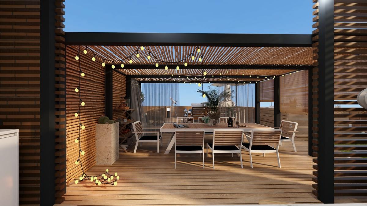 Современные алюминиевые перголы часто включают функциональные дополнения: регулируемые ламели для контроля освещенности, интегрированная система водоотвода, встроенное освещение и Zip системы на боковые стороны.