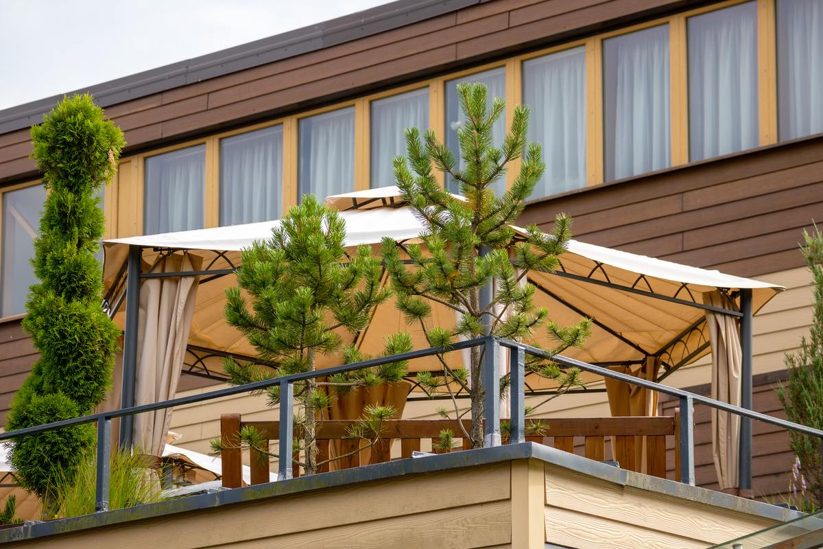 Для установки перголы, маркизы подходят лишь плоские крыши, поэтому о монтаже стоит задуматься еще на этапе проектирования здания. Есть вариант устройства террасы на скатной кровле – оставление открытого участка мансардного этажа, где можно разместить балкон-террасу в качестве комфортного места для релакса.