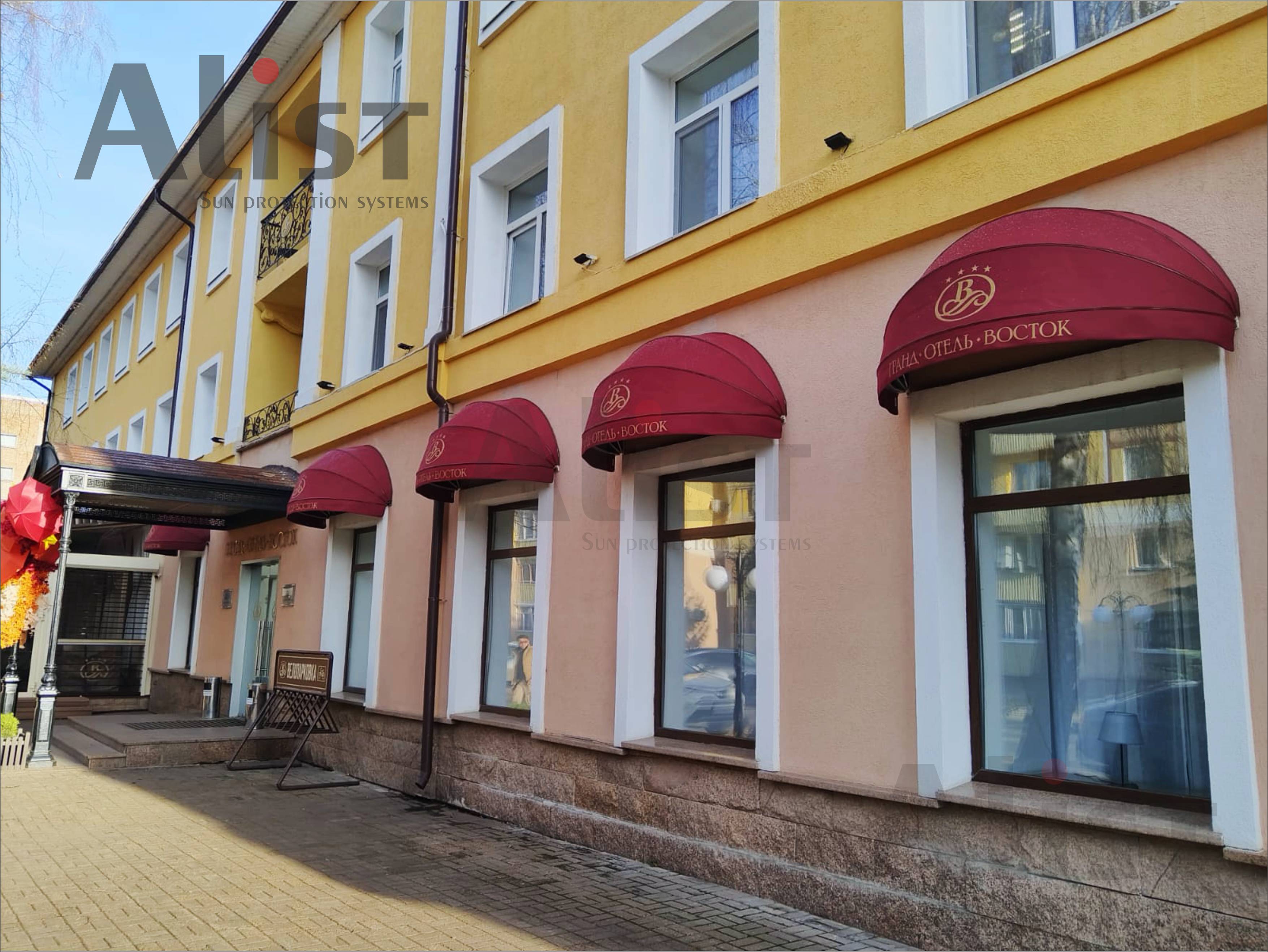 Отельеры с многолетним стажем знают, что в гостиницах и отелях текстиль, расположенный возле окон, шторы, мебель, постельное белье быстро выгорают на солнце. Решить проблему помогают маркизы над окнами.